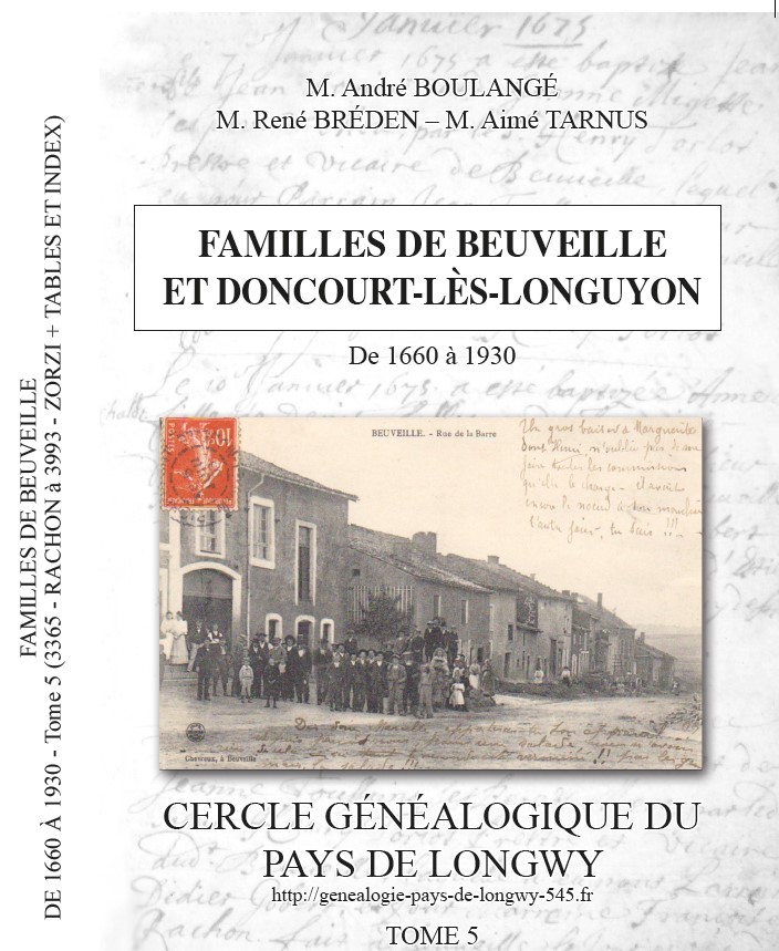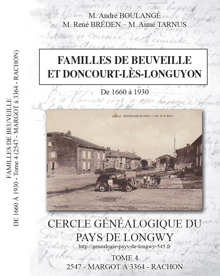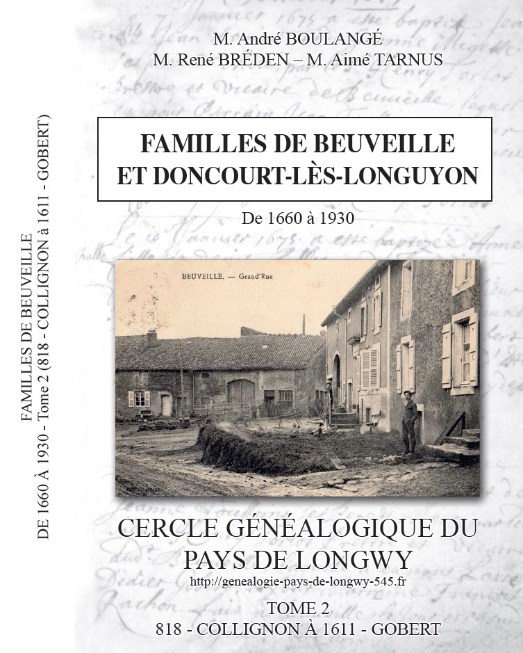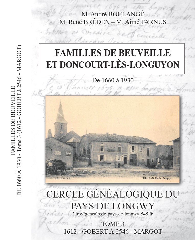 d’enfants par union et une étude sur la longévité termine cet ouvrage. Tous les historiens donnent la désignation de Belulfiaga villa dans le testament de 634, du riche diacre Adalgise, bienfaiteur de la collégiale Sainte-Agathe de Longuyon au temps du roi Dagobert, comme la trace la plus ancienne de Beuveille. Beuveille est l’une des plus anciennes paroisses du décanat de Bazailles. Patronymes de 1660 à 1930 A ABERT (1) - ABRAMOWICZ (1) - ADAM (51) - ADNES (1) - ADNET (99) - AGAT (1) - AGNES (24) - AGUINAGALDI (2) - ALEXANDRE (10) - ALI (1) - ALLEGAERT (1) - ALLERT (1) - ALTEMAIRE (1) - ALTENAIRE (2) - ALTESLABEN (1) - AMANDE (4) - AMBROISE (2) - AMELONG (1) - ANCEL (1) - ANCELL (2) - ANCION (42) - ANCOUCHE (d') (7) - ANDONET (2) - ANDRÉ (70) - ANDRÈS (1) - ANEL (1) - ANGE (1) - ANSELME (4) - ANTHONARD (2) - ANTOINE (7) - ARCHEN (1) - AREND (3) - ARENDS (19) - ARMUSIAUX (11) - ARNOULD (6) - ARQUIN (3) - ARSON (2) - ARTUS (2) - AUBERTIN (1) - AUBRION (26) - AUBRY (30) - AUERBRICK (1) - AUGER (1) - AUVRAY (1) - AVRIL (1) - AZGON (1) - AZZARA (1) B BACCHINI (1) - BACHER (3) - BACK (3) - BACKER (2) - BACKRICH (1) - BACLAIN (13) - BACLIN (8) - BADOUX (21) - BAILLE (1) - BAILLEUX (4) - BAILLIEUX (16) - BAILLY (1) - BAILY (1) - BAKER (1) - BALISKA (1) - BALON (1) - BALTAZARD (5) - BALTHAZAR (1) - BALTHAZARD (11) - BAPTISTE (1) - BARAT (2) - BARBAY (1) - BARBÉ (6) - BARBIER (2) - BARDINET (2) - BARETTI (5) - BARNOUD (2) - BARROIS (4) - BARTALOT (1) - BARTH (1) - BARTHELEMY (23) - BARUTELLO (1) - BARY (1) - BASSE (7) - BASSELEY (1) - BASTENDORFF (2) - BASTIEN (24) - BASTIN (5) - BASTOGNE (7) - BATHIN (2) - BATON (2) - BATTIN (24) - BAUCHOT (10) - BAUDLOT (1) - BAUDOIN (2) - BAUDY (5) - BAUMANN (2) - BAUNE (3) - BAURET (2) - BAVAY (1) - BAYE (1) - BAZARD (4) - BAZELOT (1) - BEAKES (1) - BEATI (1) - BEAUCHE (2) - BEAUDEUX (7) - BEAULIER (2) - BEAUVILLÉ (4) - BECHARD (1) - BECHET (9) - BECKER (6) - BECQUET (3) - BEE (1) - BEESTON (1) - BEGUINET (5) - BELIN (1) - BELLE (1) - BENARD (1) - BENOIT (1) - BENQUIN (1) - BERARD (5) - BERG (2) - BERGAMI (1) - BERGER (3) - BERINGER (1) - BERJOT (2) - BERLY (1) - BERNARD (47) - BERNARDIN (4) - BERNE (3) - BERRIEN (3) - BERTHELEMY (11) - BERTHOMÉ (1) - BERTILLEVILLE (2) - BERTIN (1) - BERTOLONI (1) - BERTON (3) - BERTONI (1) - BERTRAND (93) - BERVILLER (7) - BESANÇON (2) - BESCHET (2) - BESSET (1) - BETTEMBOURG (1) - BEUGNOT (3) - BEURNEL (2) - BIELAWSKI (1) - BIENCOURT (1) - BIENDEL (1) - BIETTE (1) - BIGARÉ (6) - BIGAT (2) - BILLOCQUE (1) - BILLON (4) - BINET (3) - BINGRAND (8) - BINLOT (1) - BIORDI (1) - BIRGE (1) - BIRTELL (1) - BIRTHEL (1) - BISSERT (2) - BIVERT (7) - BLAISE (2) - BLANCHARD (12) - BLANCHEGORGE (4) - BLANCHETÊTE (88) - BLAVET (1) - BLOCK (1) - BLONDEAU (1) - BLONDEL (1) - BLONDIN (5) - BODARD (1) - BODIN (2) - BODSON (7) - BOEUF (2) - BOHAN (14) - BOILEAU (5) - BOISLEVERT (1) - BOISTEAUX (2) - BOITEUX (12) - BOLLET (1) - BOLTZ (1) - BOLY (4) - BOMBLÉ (3) - BONARD (1) - BONFANTI (1) - BONNARD (1) - BONNENBERGER (4) - BONNERT (1) - BONNETERRE (2) - BONTEMPS (2) - BOSCARDIN (1) - BOSCH (1) - BOSKOWITZ (1) - BOSQUET (2) - BOSSUETTE (4) - BOTTIÉ (1) - BOTTIN (1) - BOUCHER (8) - BOUDAILLE (1) - BOUDET (2) - BOUDIER (9) - BOUILLET (1) - BOULAND (2) - BOULANGÉ (2) - BOULANGER (8) - BOULLE (3) - BOULLIET (1) - BOUR (2) - BOURDIER (1) - BOURDON (4) - BOURGATTE (2) - BOURGEOIS (5) - BOURGUIGNON (29) - BOURGUIN (1) - BOURLOT (1) - BOURSON (1) - BOURTON (4) - BOUVET (1) - BRACK (1) - BRACONNIER (7) - BRAGARD (60) - BRAGAS (1) - BRAIDY (2) - BRANDIN (2) - BRANGÉ (2) - BRASSEUR (3) - BRAUJOIN (1) - BRAUN (2) - BRAY (1) - BRAYANT (22) - BRAYE (1) - BREDAT (1) - BREHANT (2) - BREINER (4) - BRETELLE (11) - BRETON (1) - BREYER (4) - BRICE (30) - BRIEY (1) - BRINGEL (2) - BRINSTER (6) - BRION (4) - BRIOUD (1) - BRISEAU (1) - BRISTIEL (7) - BRIX (2) - BRIY (2) - BROCARD (8) - BRONET (1) - BROSÉUS (1) - BRUGNAUX (1) - BRUMEAUX (1) - BRUNEAUX (1) - BRUNET (7) - BRUNSTEIN (1) - BRUYER (1) - BRUYERE (1) - BUCHWEILER (3) - BUGNOT (6) - BURHEZ (1) - BURKEL (1) - BURNOTTE (2) - BUSSER (2) - BUSY (1) - BUZY (3) C CAILLET (1) - CAILLOUX (1) - CAJOT (1) - CALANDRIN (1) - CALENDRIN (1) - CALMES (1) - CAMBRESY (15) - CAMÉ (7) - CAMETZ (9) - CAMEZ (3) - CAMMARATA (1) - CAMUS (4) - CAQUARD (2) - CARBONNAUX (1) - CARBONNEL (1) - CARDINET (5) - CARÊME (6) - CARENTZ (4) - CARLEHAN (2) - CARLIER (1) - CARLIN (1) - CARMEAU (2) - CARRIER (1) - CASSOL (2) - CASTILLE (1) - CAULIER (1) - CAULLET (1) - CAUSIER (2) - CAUVET (1) - CAZAIN (1) - CAZIN (2) - CAZOTTE (1) - CAZY (1) - CECCARONI (1) - CHALIN (1) - CHALLIOT (15) - CHAMEAUX (1) - CHANCEL (1) - CHANY (de ) (1) - CHAPIRON (2) - CHAPLARD (4) - CHAPUT (1) - CHARDEBAS (2) - CHARPENTIER (14) - CHARUE (125) - CHASSY (1) - CHAUDEU (2) - CHAUDEUX (11) - CHEF (5) - CHENET (3) - CHENU (1) - CHENUT (8) - CHEREN (1) - CHEVALIER (1) - CHEVALLIER (10) - CHEVÉNEMENT (1) - CHEVET (1) - CHEVRE (1) - CHEVREUX (6) - CHEVRIER (1) - CHEZEAU (1) - CHILS (2) - CHIMTZ (1) - CHIUSTAIL (1) - CHOLE (2) - CHOLLE (4) - CHOMPRET (2) - CHOPIN (1) - CHOPINÉ (1) - CHOPPIN (1) - CHOSSELER (1) - CHOTIN (1) - CHOUP (1) - CHOUTIN (1) - CHOUX (1) - CHRETIEN (3) - CHRISMAN (1) - CIANCANELLI (1) - CICHOSZ (1) - CIRBAISSE (1) - CIRET (16) - CLAISSE (1) - CLARI (1) - CLAUDE (7) - CLAUSE (82) - CLAUSSE (5) - CLAVIERE (1) - CLEFERT (1) - CLÉMANN (9) - CLEMENT (6) - CLEMMERY (2) - CLERC (5) - CLERGET (1) - CLESSE (30) - CLODI (1) - CLOQUET (10) - CLOSELLINAZ (1) - CLOSSET (1) - COIGNARD (8) - COIGNARD (de ) (2) - COILIN (2) - COINE (1) - COIRIN (1) - COLAS (10) - COLIN (2) - COLLARD (4) - COLLÉ (1) - COLLET (1) - COLLIGNON (217) - COLLIN (21) - COLMEZ (8) - COLOMBE (1) - COLPIN (1) - COLSON (1) - COMMEN (6) - CONDÉ (2) - CONEL (1) - CONSTANT (3) - CONTANT (1) - CONTER (1) - COQUIN (1) - CORAL (11) - CORBIER (2) - CORDIER (5) - CORDONNIER (8) - CORNEHAUT (32) - CORNELIS (7) - CORNELIUS (2) - CORNET (3) - CORNICHE (1) - CORNILLON (1) - CORRE (